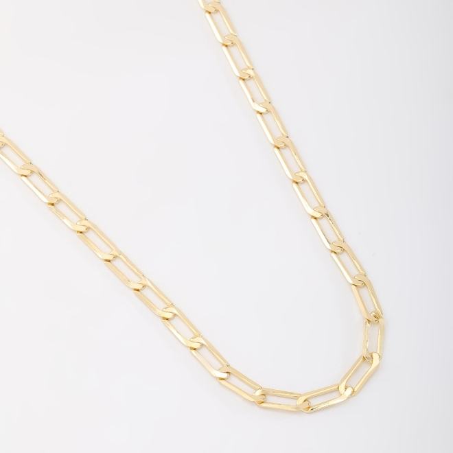 CORRENTE CARTIER BANHADA A OURO 18K COM ELOS LONGOS, IDEAL PARA QUEM BUSCA UM VISUAL MODERNO E ELEGANTE.